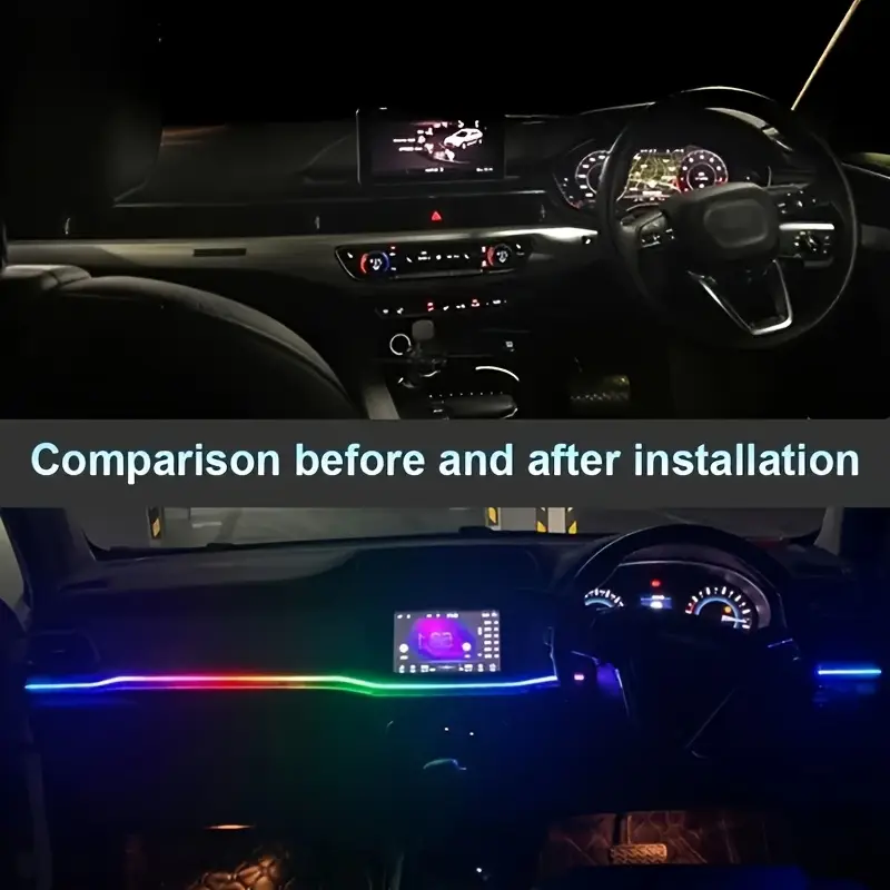 Designed for all 12V vehicles, from BMW and Audi to Toyota and Volkswagen. The flexible fiber optic strips can be trimmed to size and easily tucked into dashboard or door seams. Plug into your car’s 12V socket or connect to ACC for a clean, hidden installation.